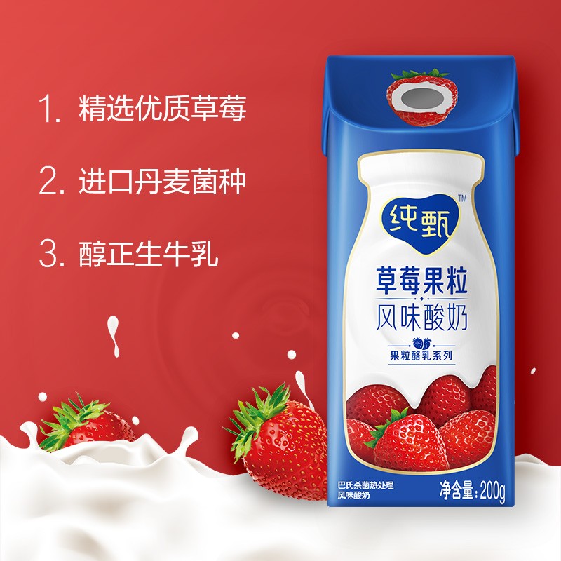 代发纯甄 常温风味酸牛奶 草莓果粒 200g*10盒