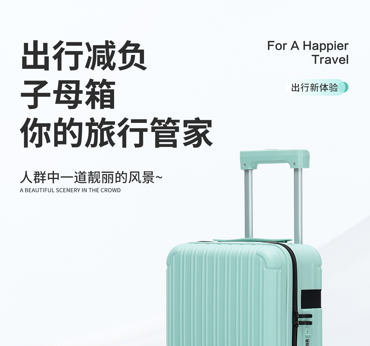 代发途帮(TOBOOG)商务休闲可 登机子母行李箱 2203 黑色14+20寸