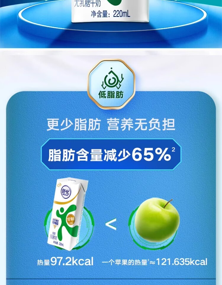 代发舒化牛奶低脂无乳糖型 220ml*12盒