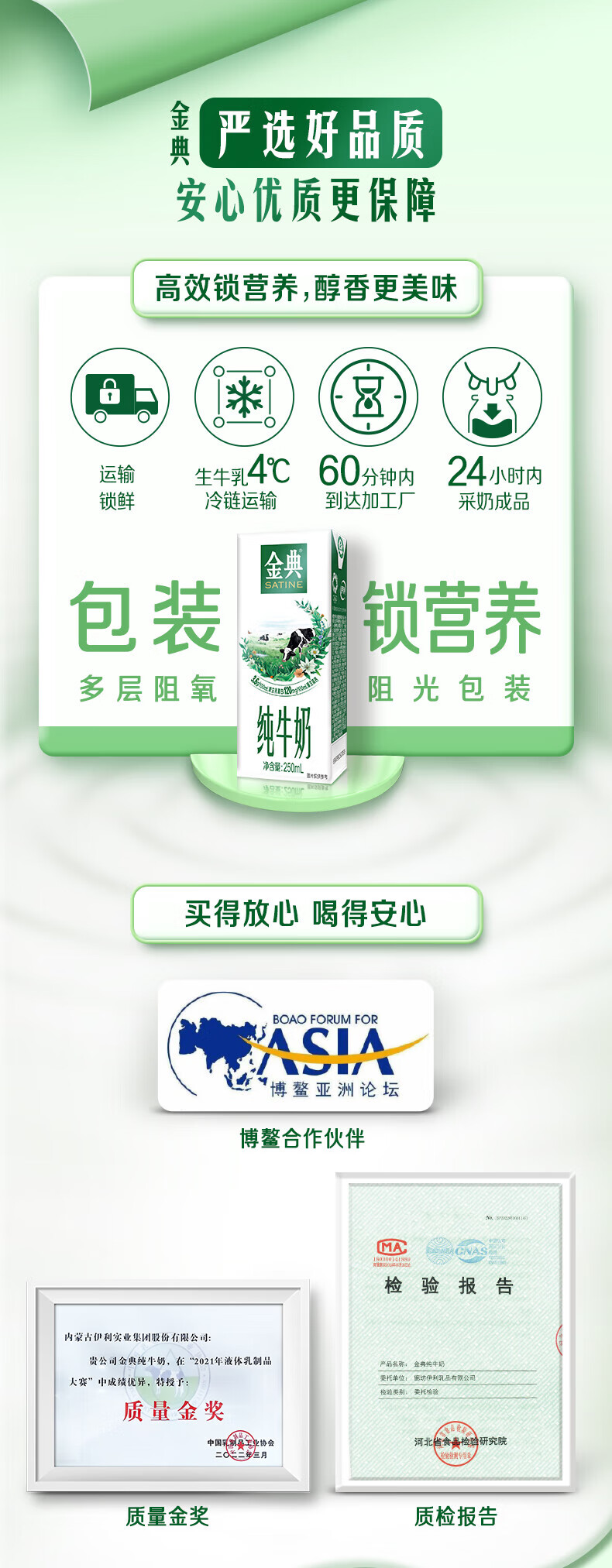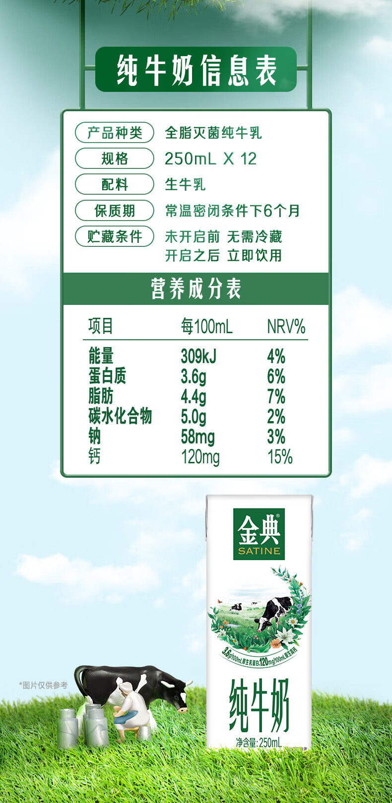 代发金典 纯牛奶 250ml*12盒
