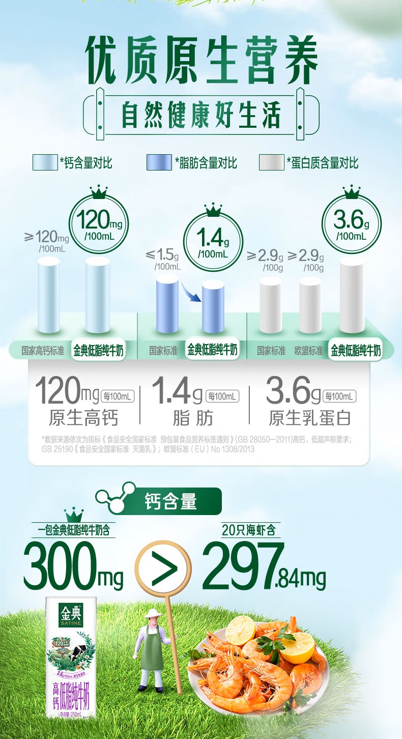 代发金典 低脂高钙纯牛奶 250ml*12盒