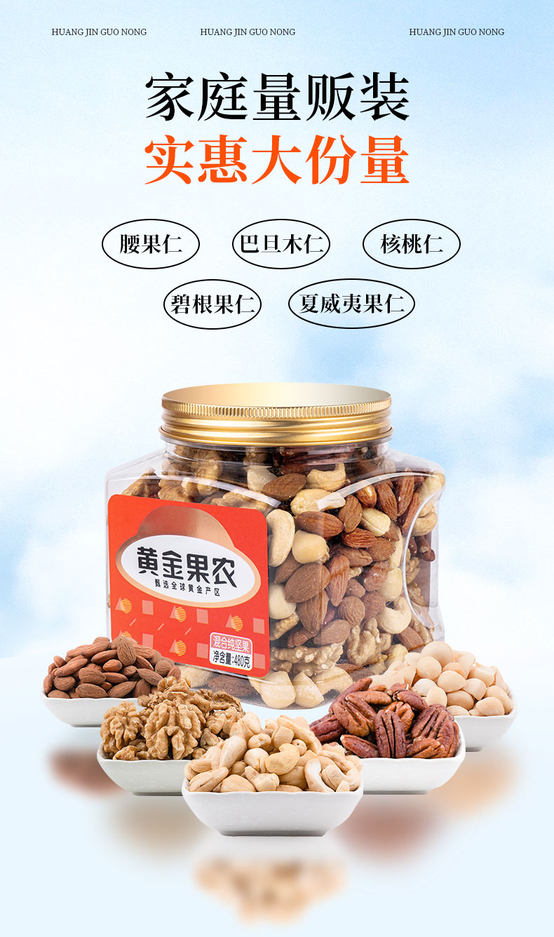 代发黄金果农混合纯坚果坚果仁休闲零食480g罐装