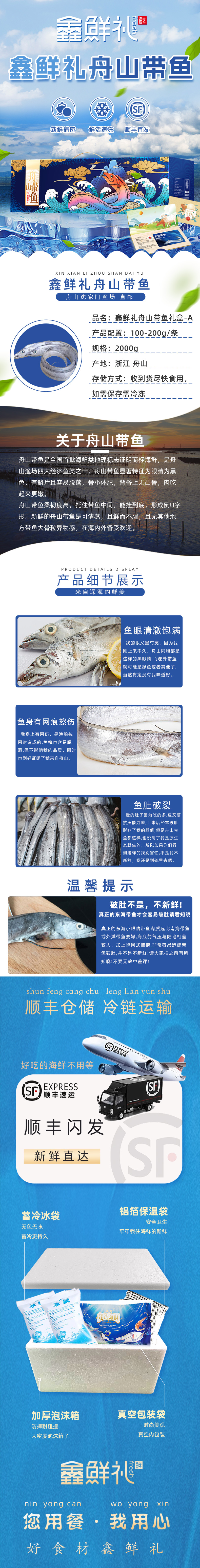 代发鑫鲜礼舟山带鱼礼盒2000g