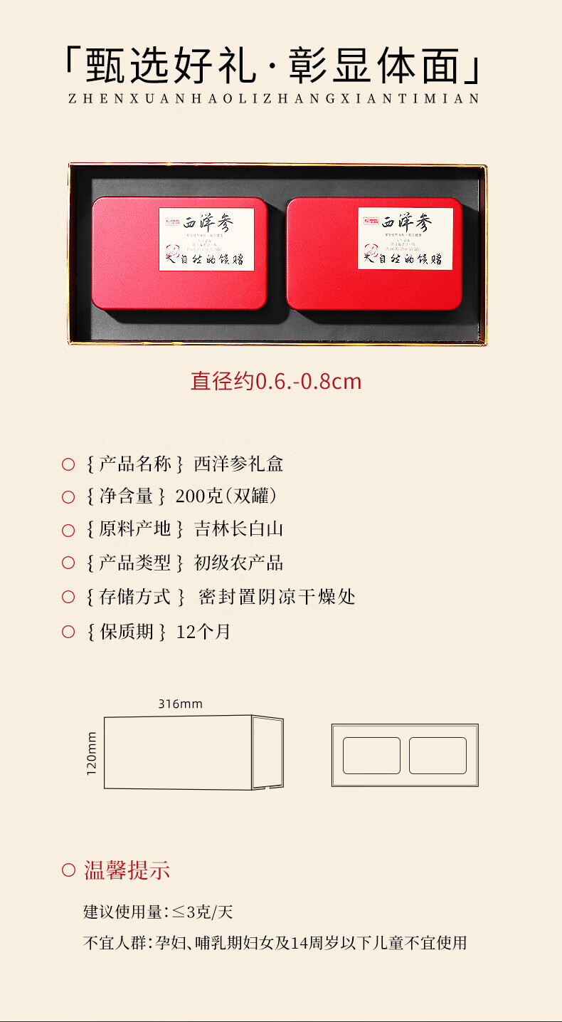 源头杞里香200g(2罐)礼盒装0.6-0.8cm西洋参014294