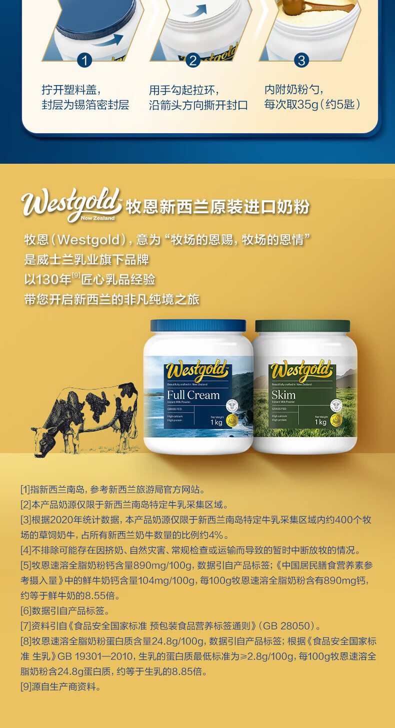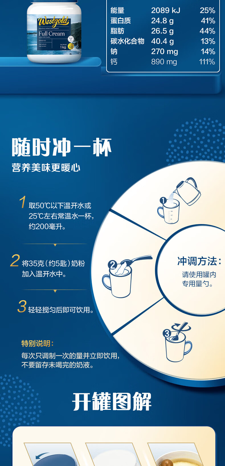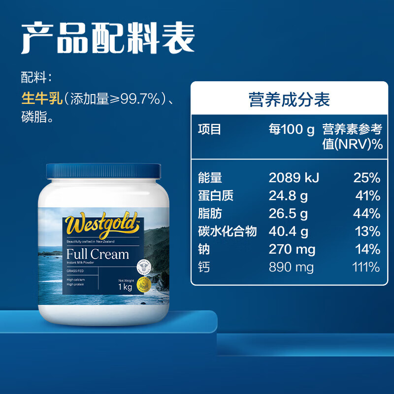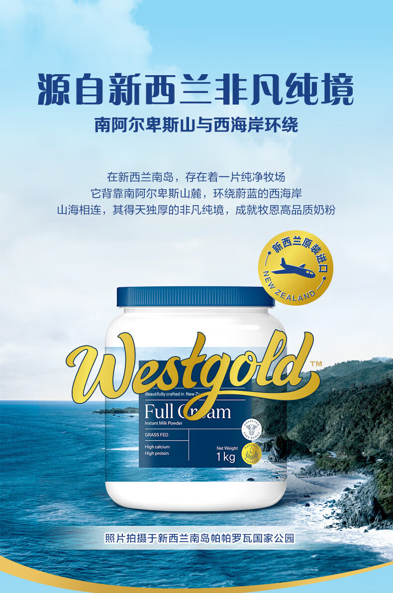 代发Westgold速溶全脂奶粉(罐装)1kg