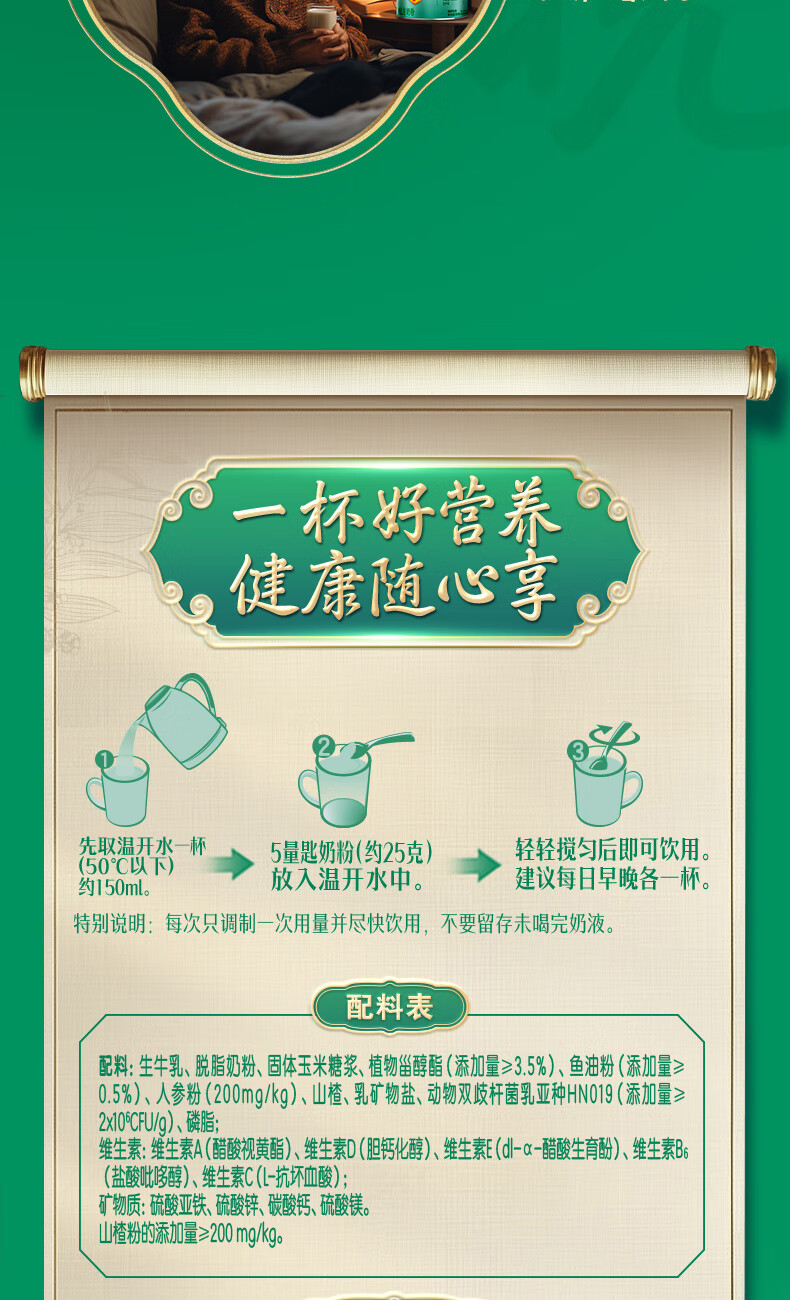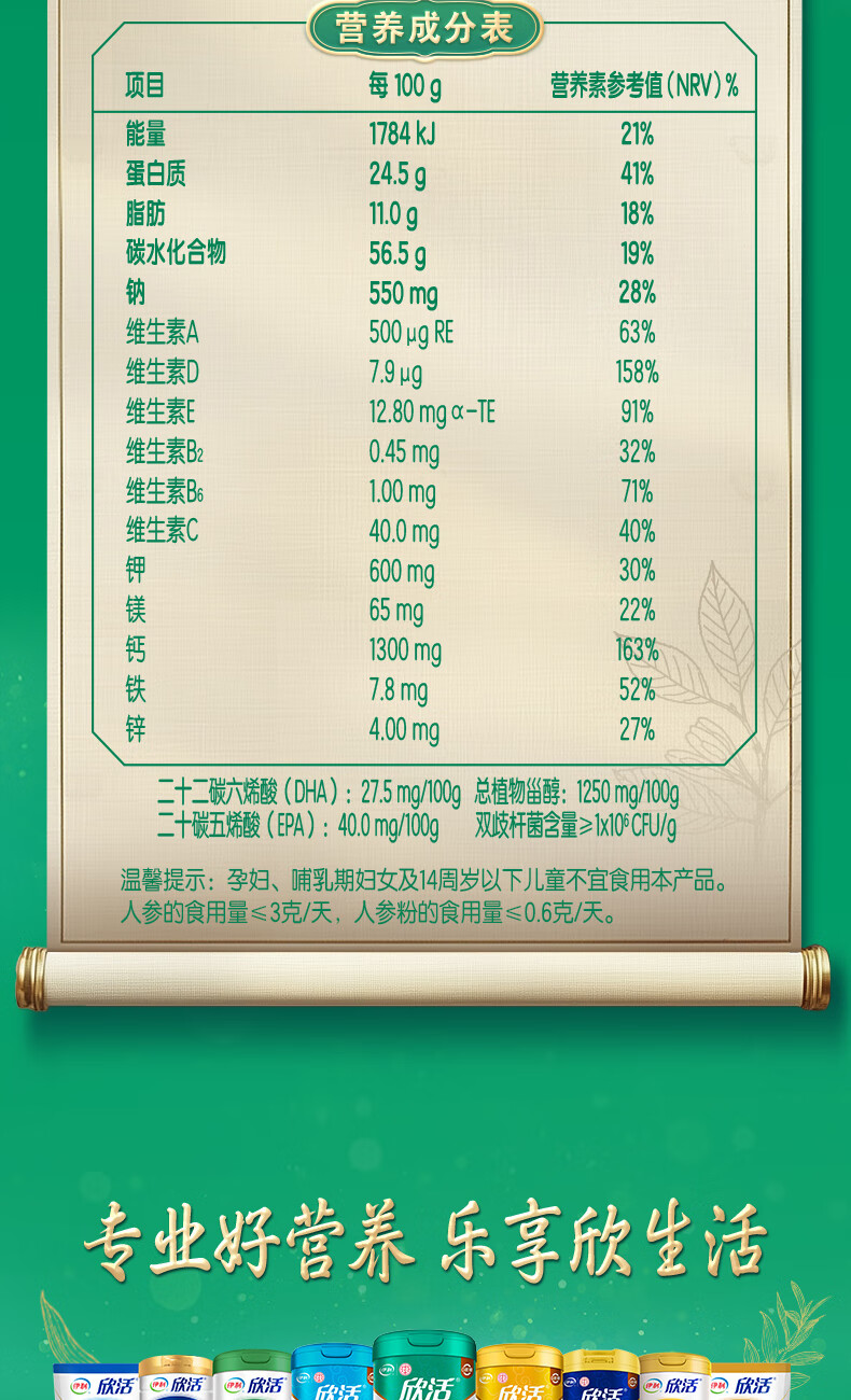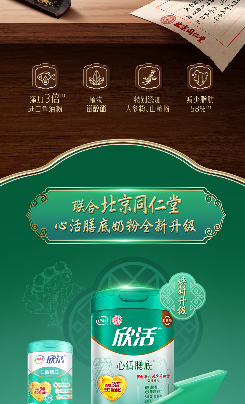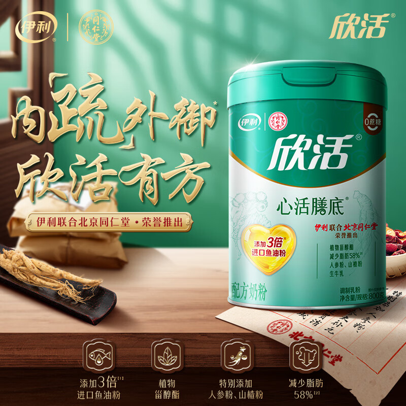 代发伊利欣活心活膳底配方奶粉(听装)(同仁堂联名)800g
