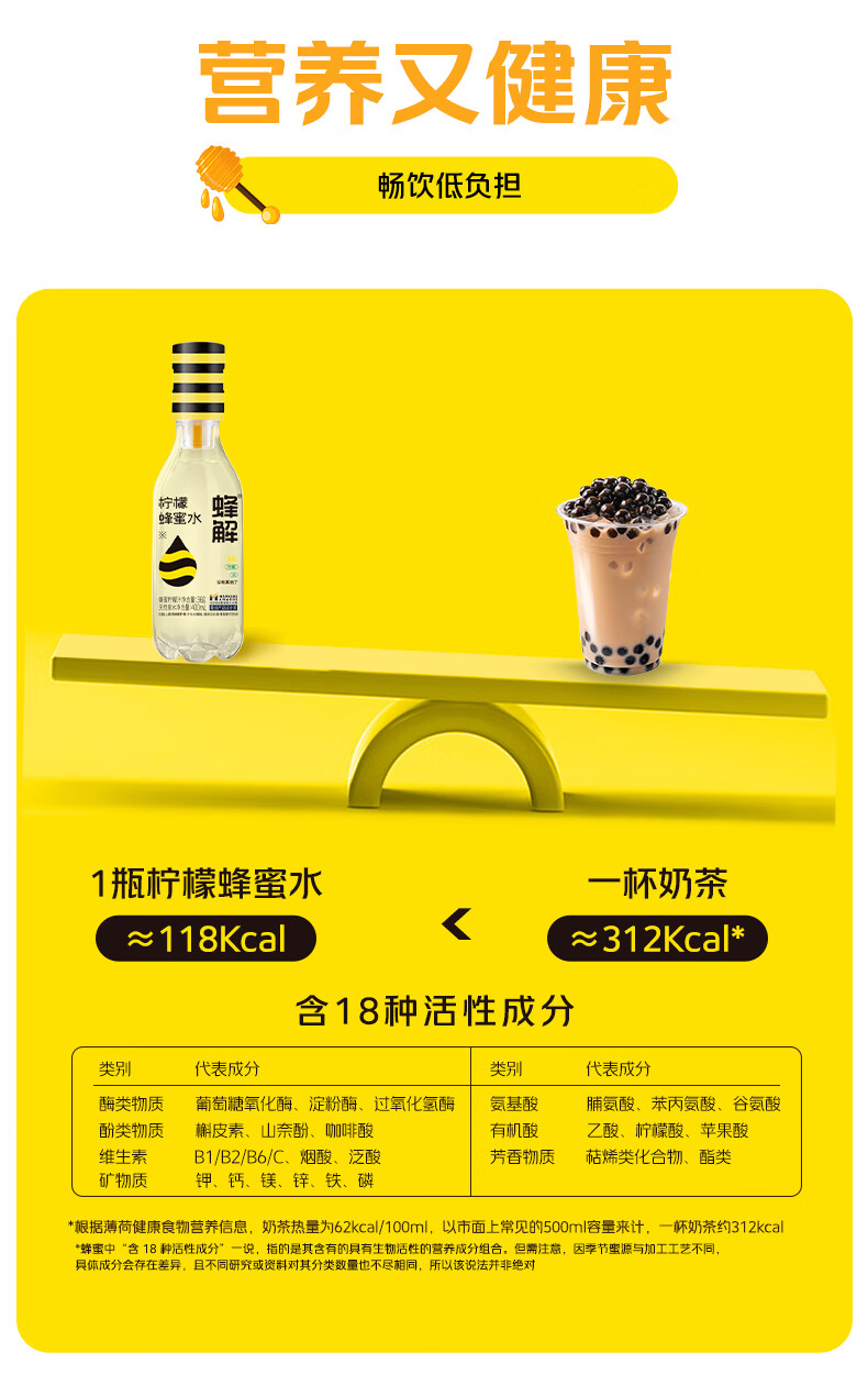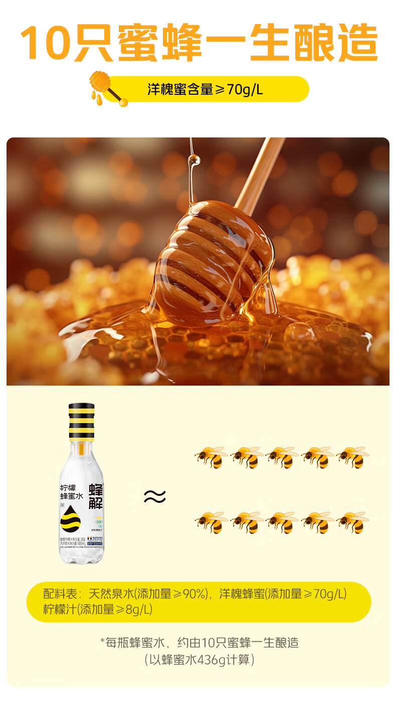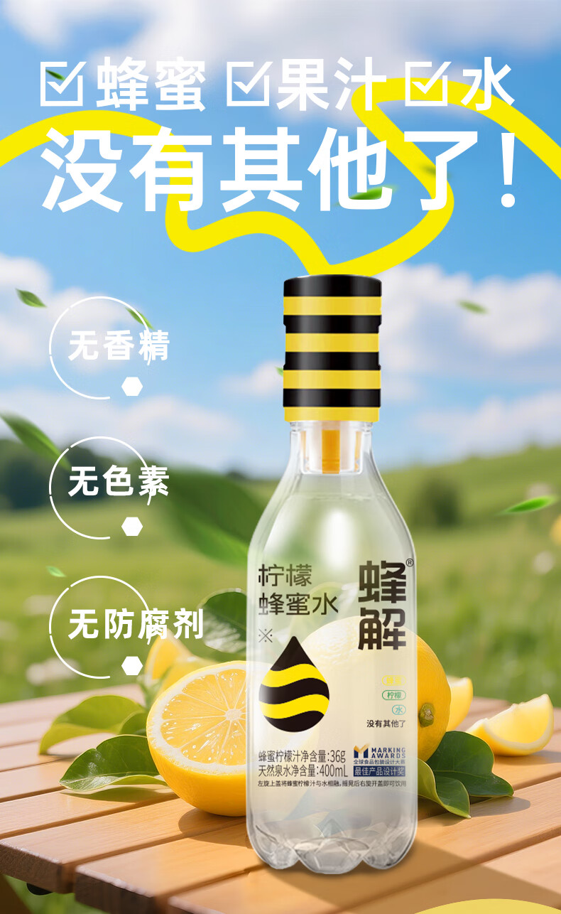 代发自营蜂解(Honey Relief)柠檬蜂蜜水 0脂果蔬汁饮料健康便捷分离式饮品 436g*6