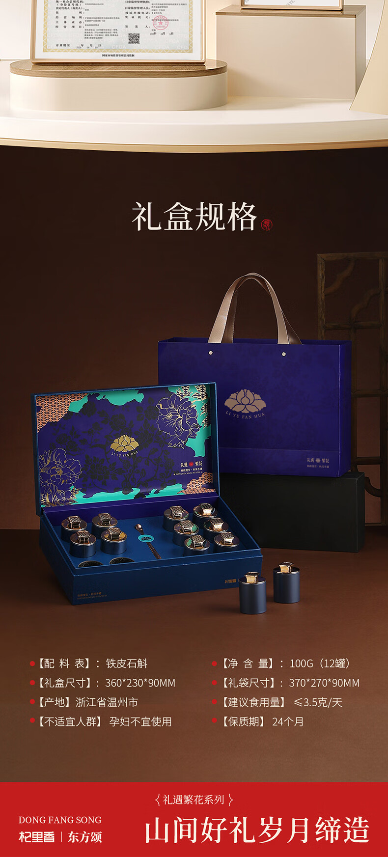 源头杞里香100g(12罐)礼盒装铁皮石斛-礼遇繁花蓝色014444