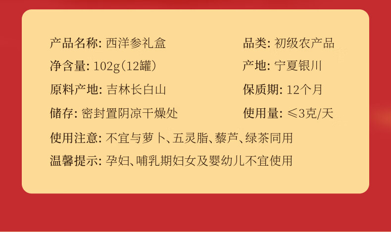 源头杞里香102g12罐参藏若虚礼盒0.8-1.0cm西洋参014474