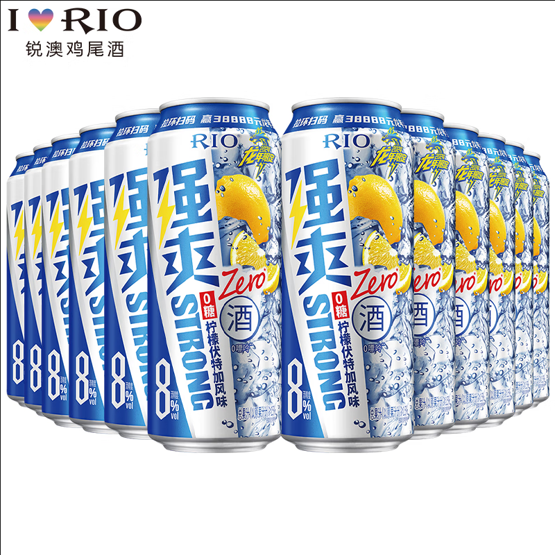 代发自营锐澳(RIO)强爽8度系列预调鸡尾酒洋酒气泡果酒【零糖】 500mL 12罐