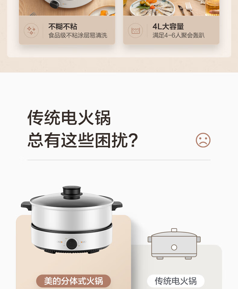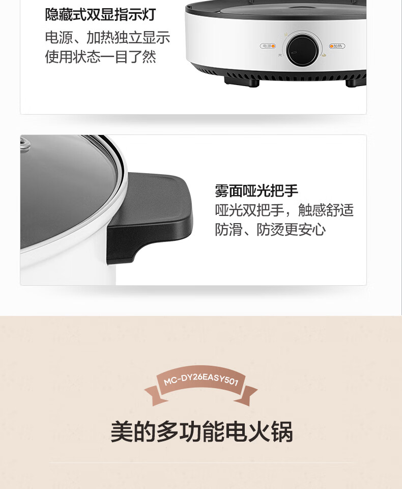 代发美的 电火锅 电炒锅4L家用多用途锅 火锅专用锅 宿舍 分体式火锅 电煮锅 电热锅 DY26Easy501