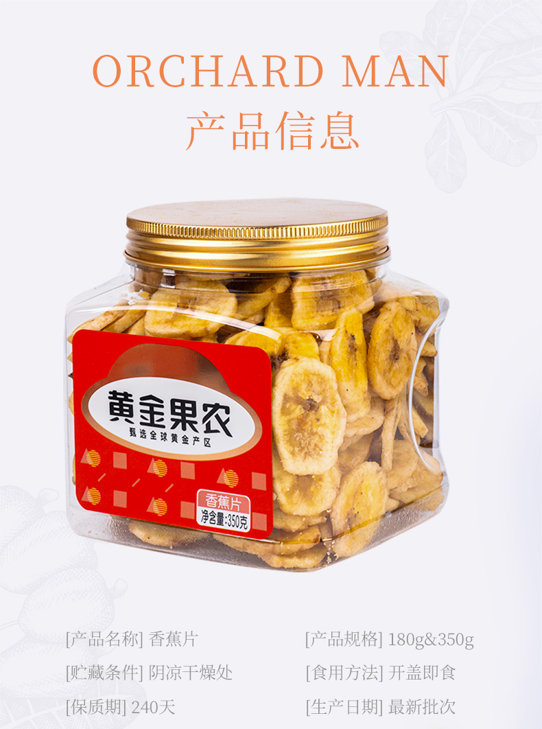 代发黄金果农旗舰店香蕉片果干网红零食180g*2罐装