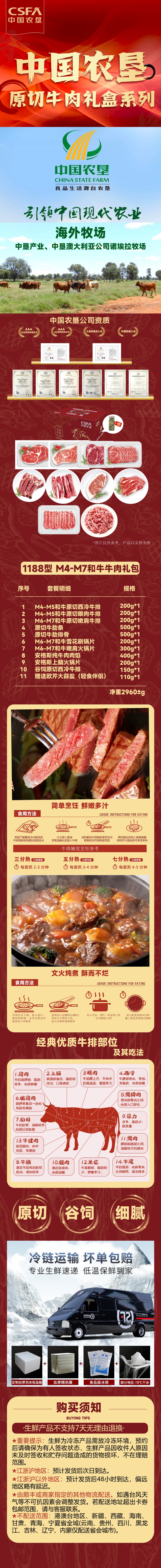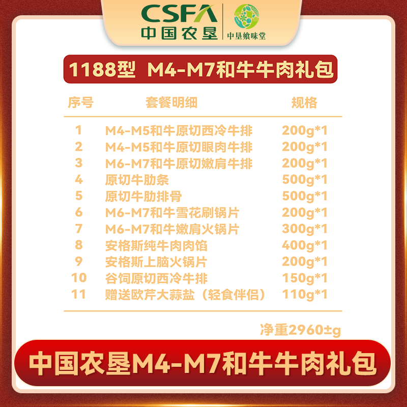 代发中国农垦M4-M7和牛牛肉礼包1188型2960g