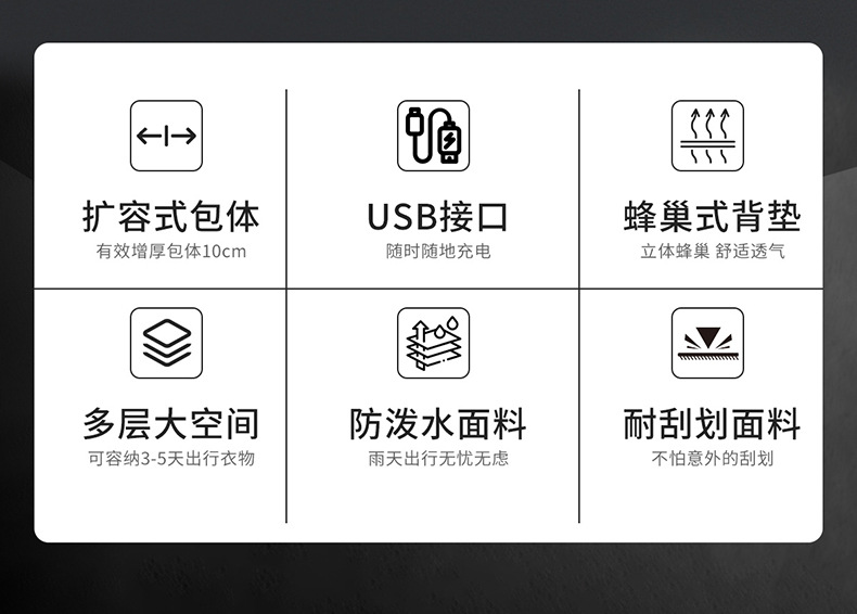 代发贝唯思双肩包男士背包商务笔记本电脑包旅行出差可扩展BWS6930-X52
