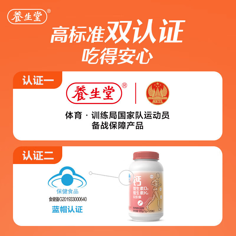 代发养生堂 钙维生素D3维生素K2软胶囊120粒*2瓶