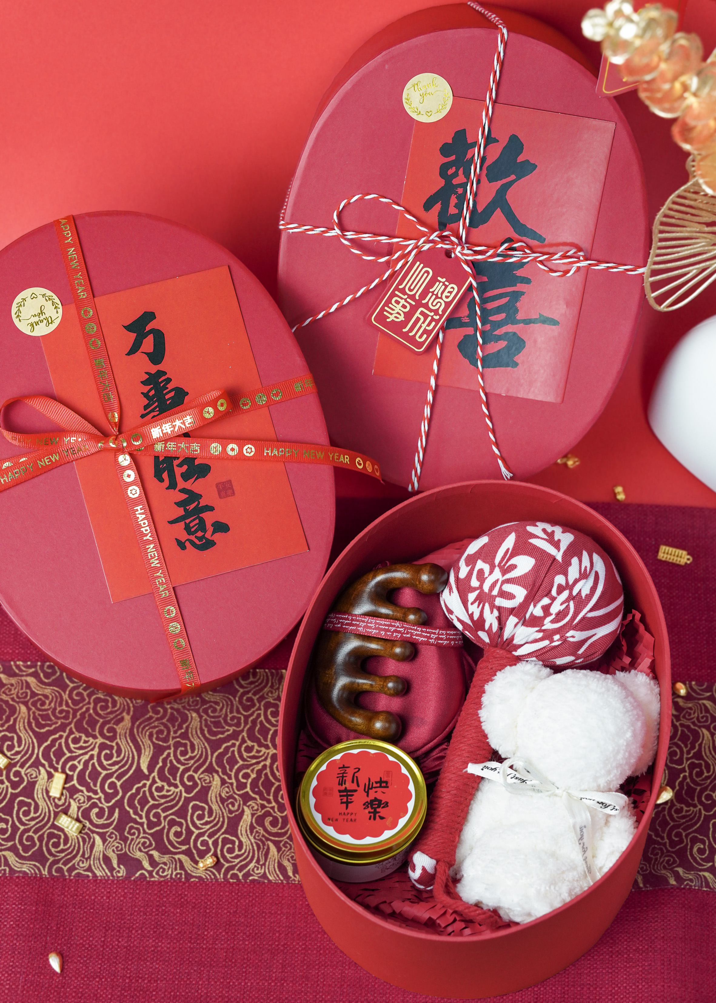 新年红椭圆礼盒/丝带/卡片/手提礼袋