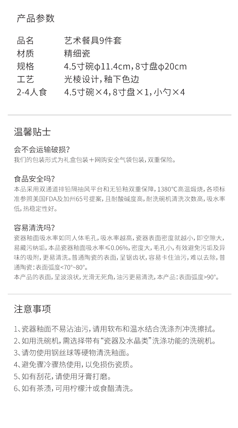 4.5寸碗4只、8寸盘1只、小勺4只