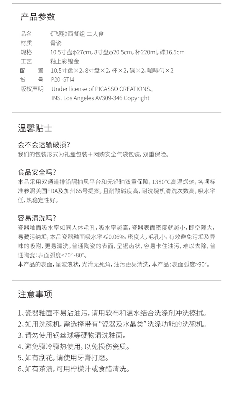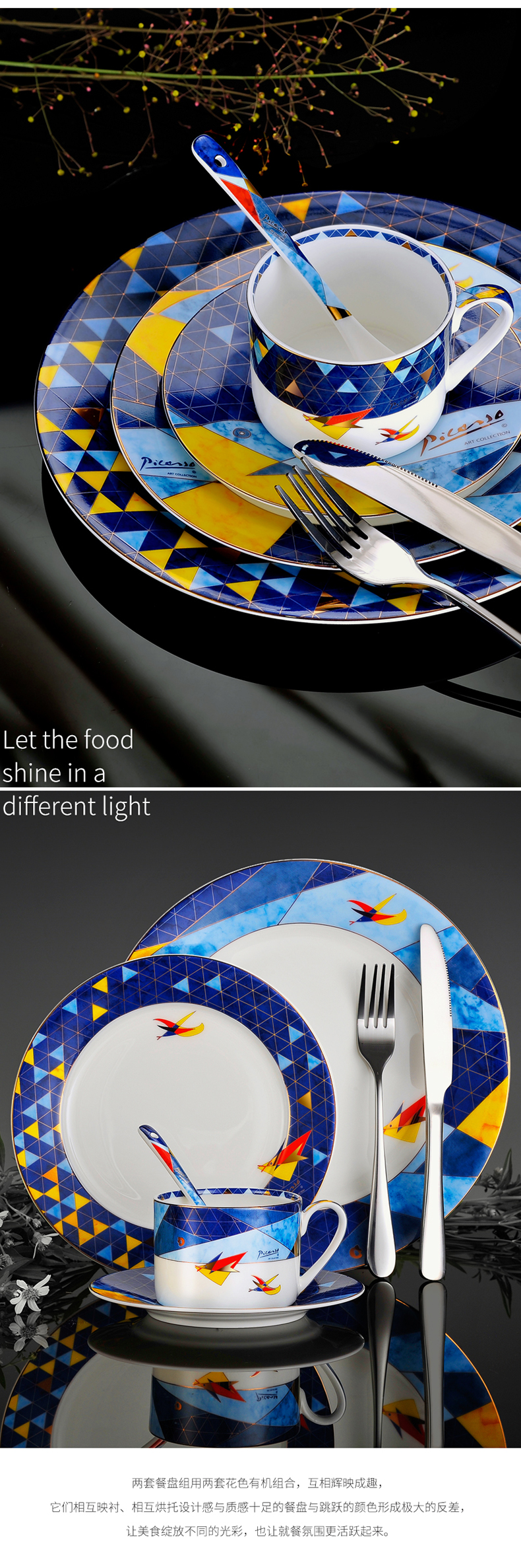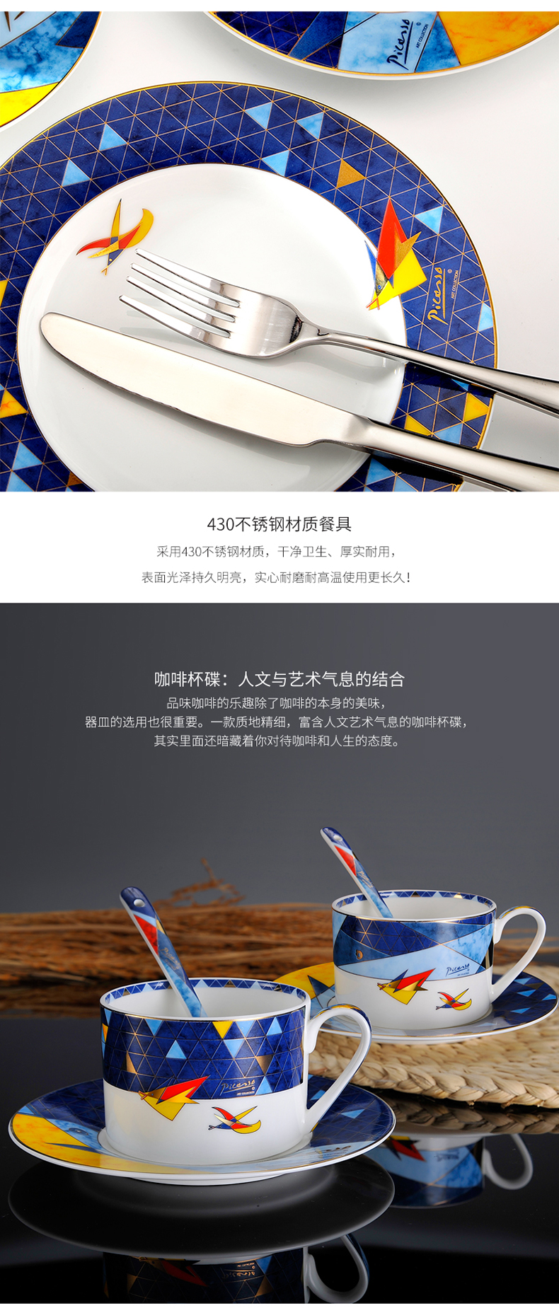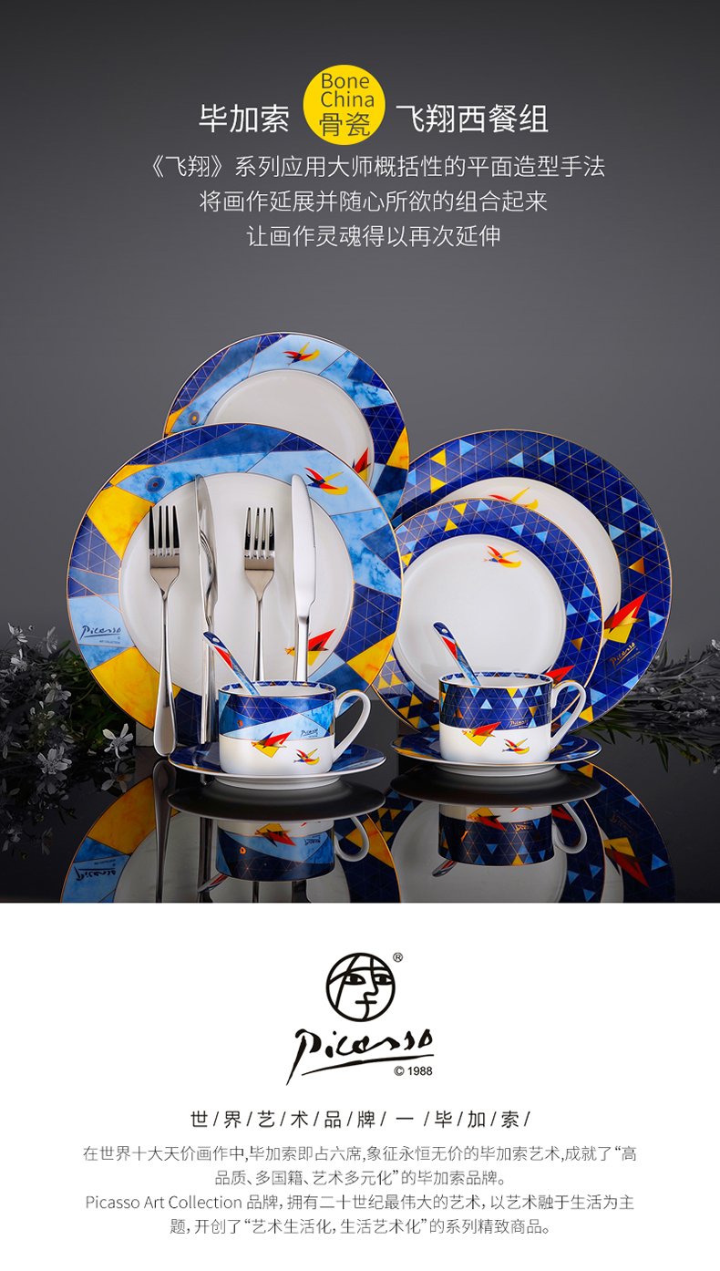 源头毕加索《飞翔》骨瓷西餐组2人套具P20-XT14釉上彩镶金人文与艺术气息的结合