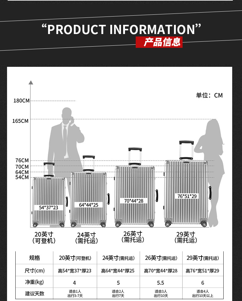 代发途帮(TOBOOG)拉铝框包角防刮行李箱1608 29寸