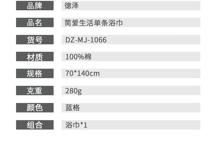 代发德泽简爱生活单条浴巾DZ-MJ-1066