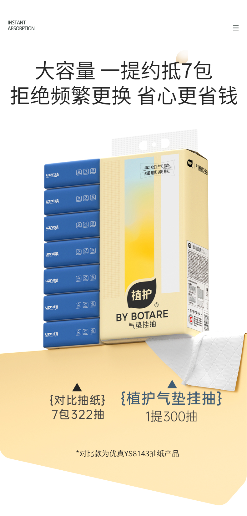 荐代发植护 挂式气垫纸巾(炽芒系列)175*175/4层 300抽*1提ZH408733*1