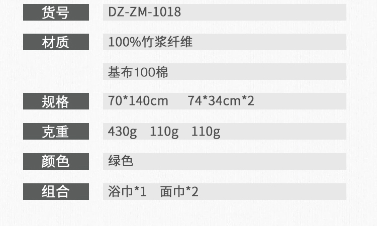 代发德泽竹纤维毛浴巾三件套(浴巾*1 面巾*2)DZ-ZM-1018