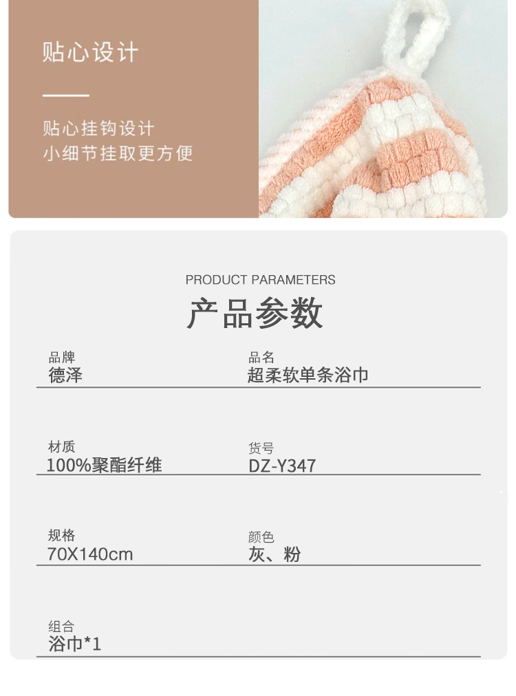 代发德泽超柔软单条浴巾-粉DZ-Y347