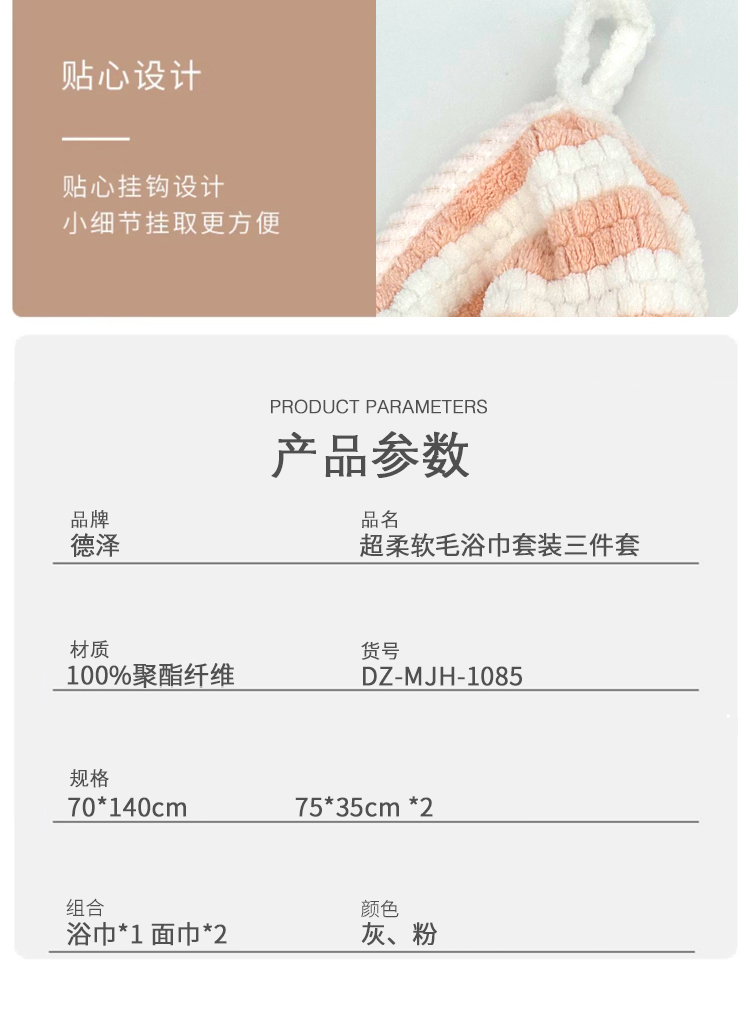 代发德泽超柔软毛浴巾套装三件套(浴巾*1 面巾*2)DZ-MJH-1085