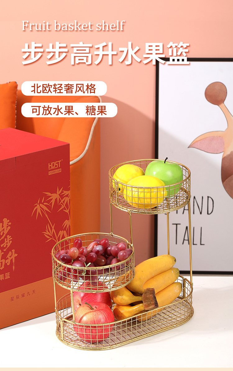 代发华典世通HDST 步步高升水果篮 客厅茶几多层果篮糖果点心干果零食置物架