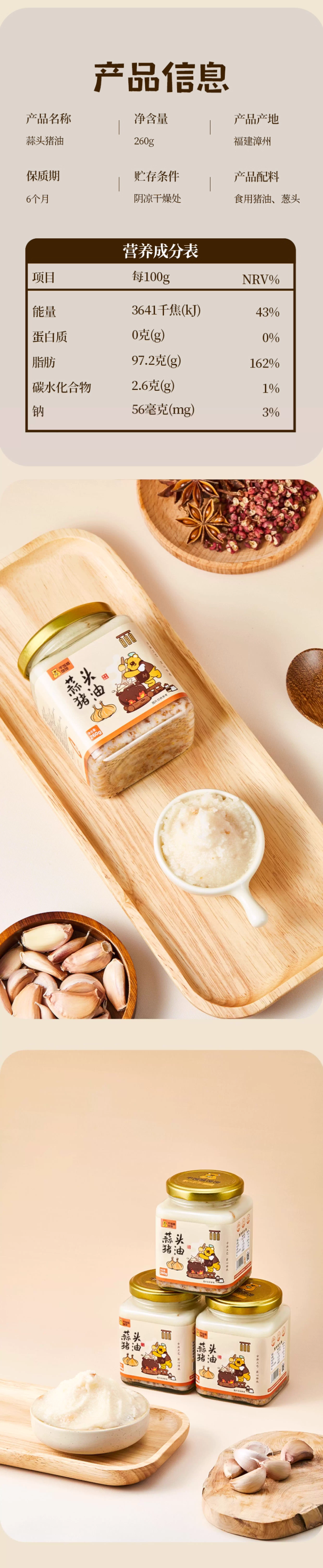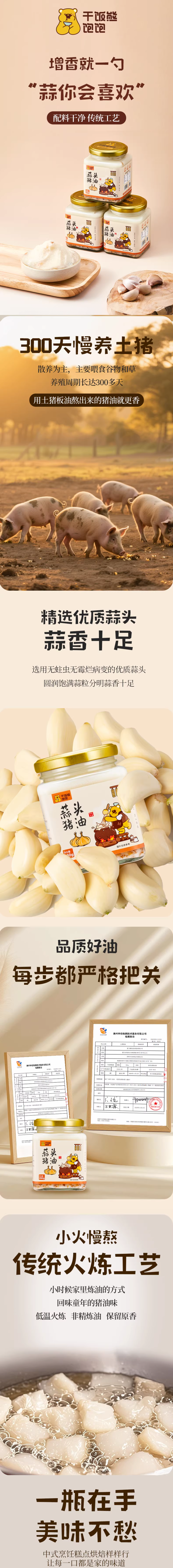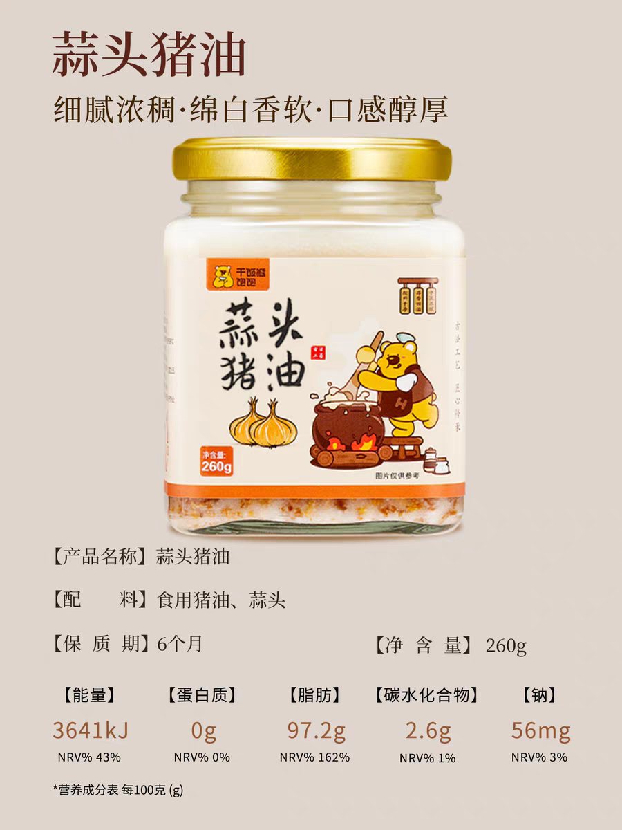 当前位置:首页 > 食品饮料 > 粮油调味 > 调味品 > 干饭熊饱饱 蒜头猪油2罐装