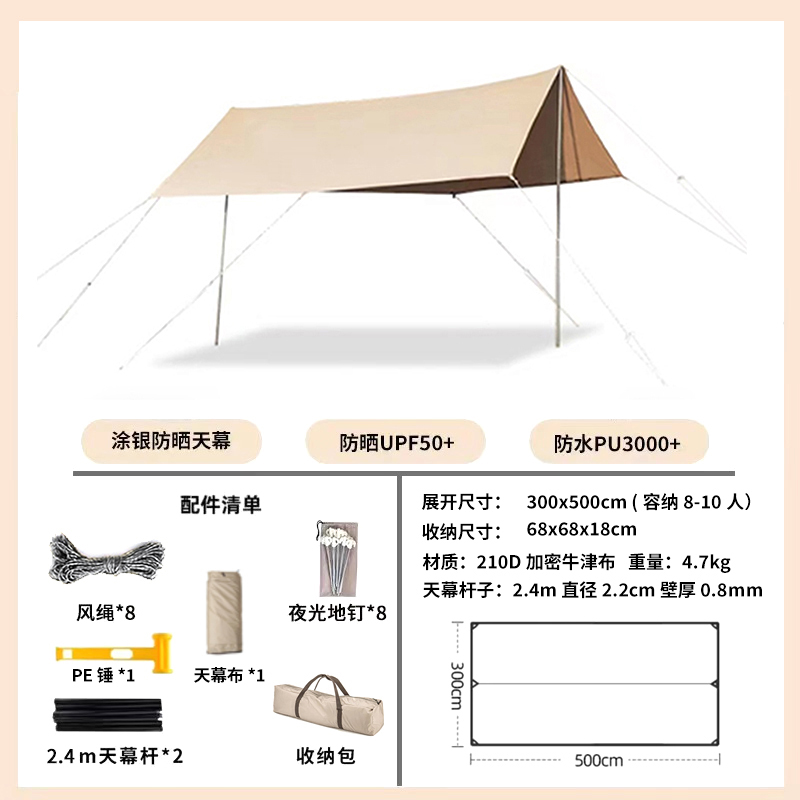 代发FTLY飞图乐户外流沙金天幕涂银3*5m TM0102