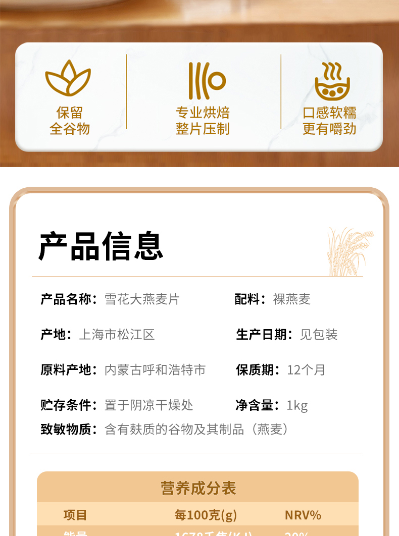 荐代发艾谷雪花大燕麦片1kg