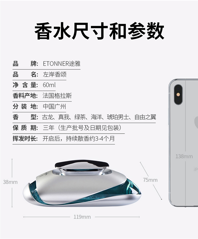 香水瓶装60ML香水+50ML补充液+纳米防滑垫+闻香瓶1套+礼品盒 手袋
