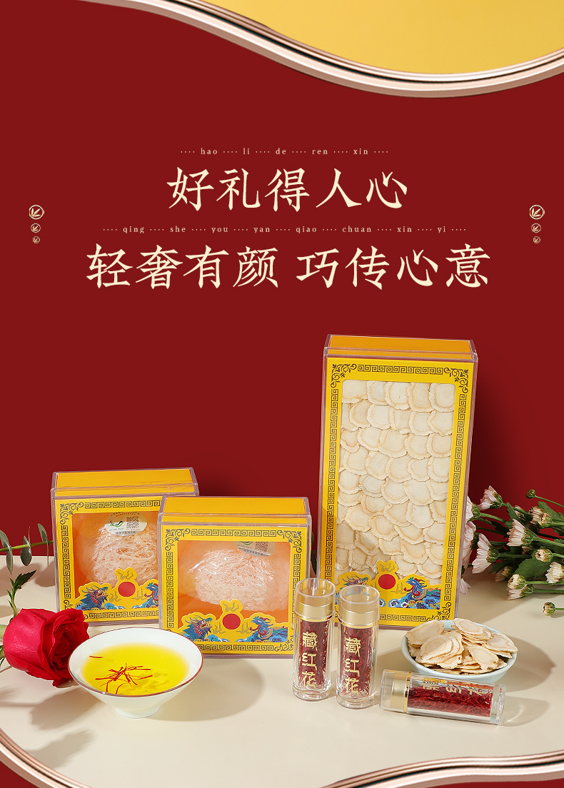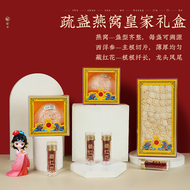 精选高品质藏红花、高品质西洋参,搭配国际溯源疏盏燕窝,三重滋补好物汇聚,是高端送礼与日常养生的优选之选。