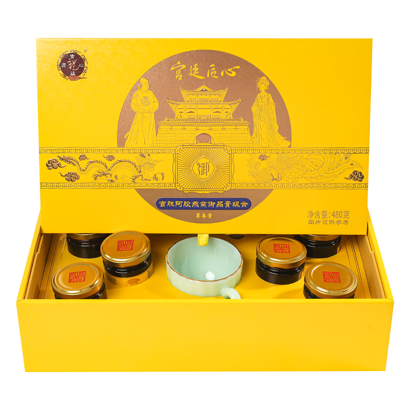 宫联阿胶燕窝御品膏组合(男女组合新品)80 克6 瓶,配套茶具1 套,外包装礼盒1,手提礼袋1