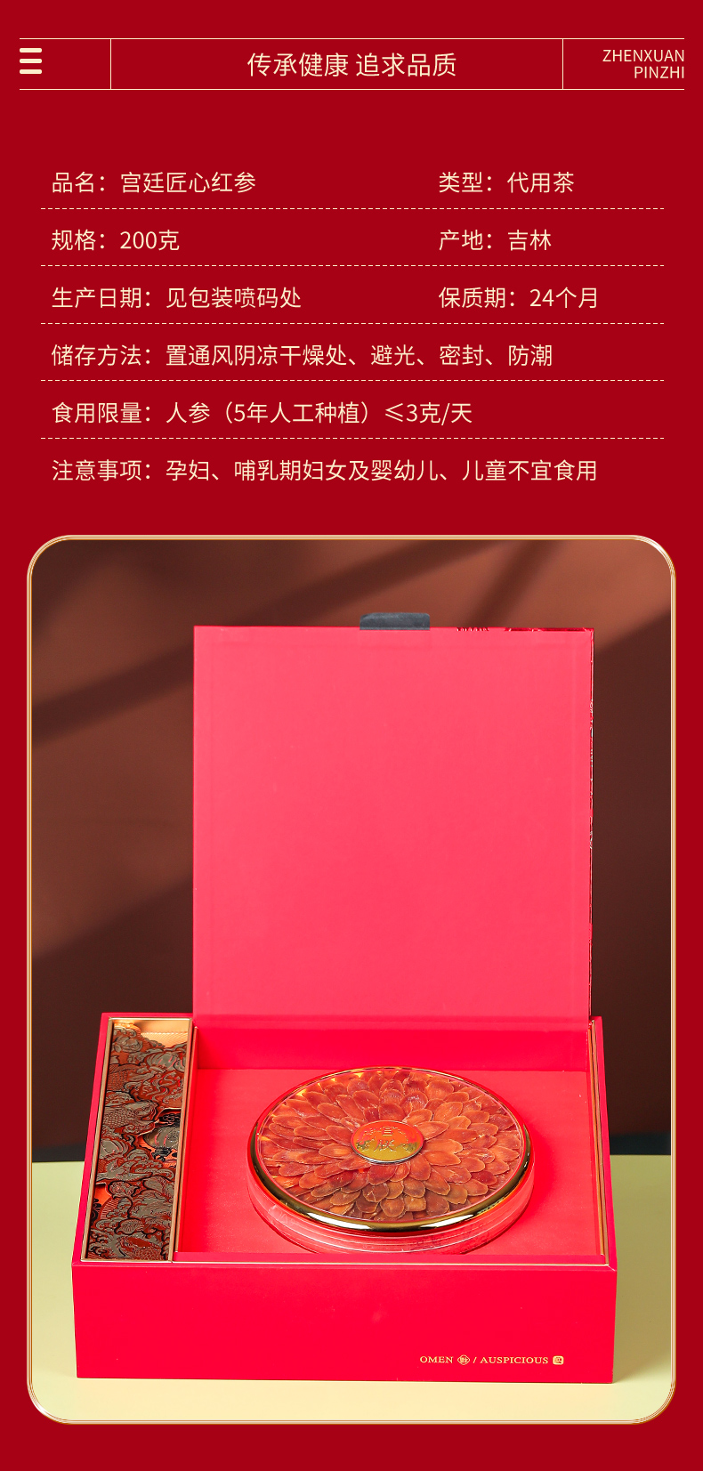 代发宫廷匠心 红参(2025 贺岁款)200 克礼盒装