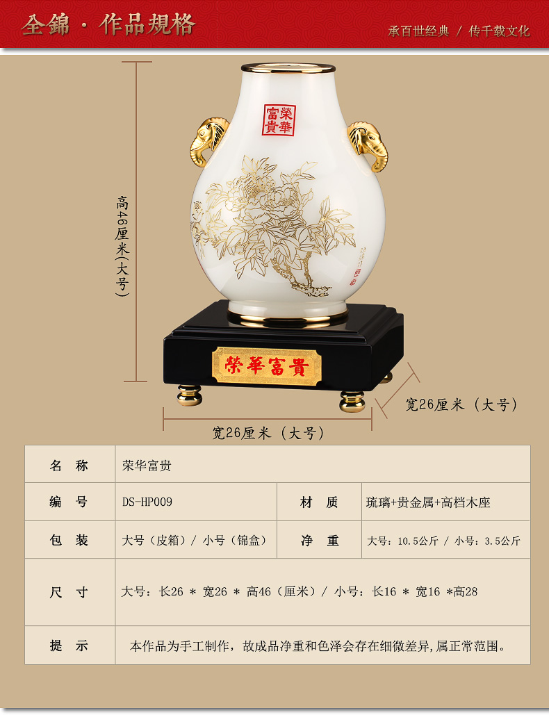 当前位置:首页 > 家居日用 > 家装软饰 > 装饰摆件 > 全锦大花瓶摆件琉璃工艺品客厅玄关摆放公司开业送礼新居乔迁定制