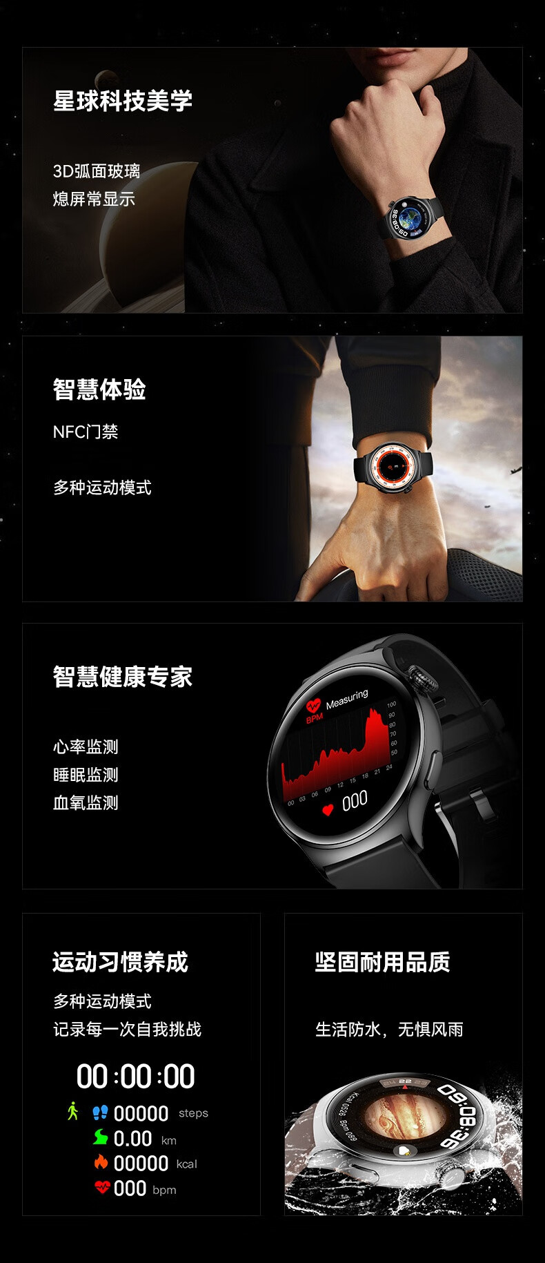 代发塞尔兰斯(Sayrelances)WD-02智能运动手表户外健康检测手表 黑色