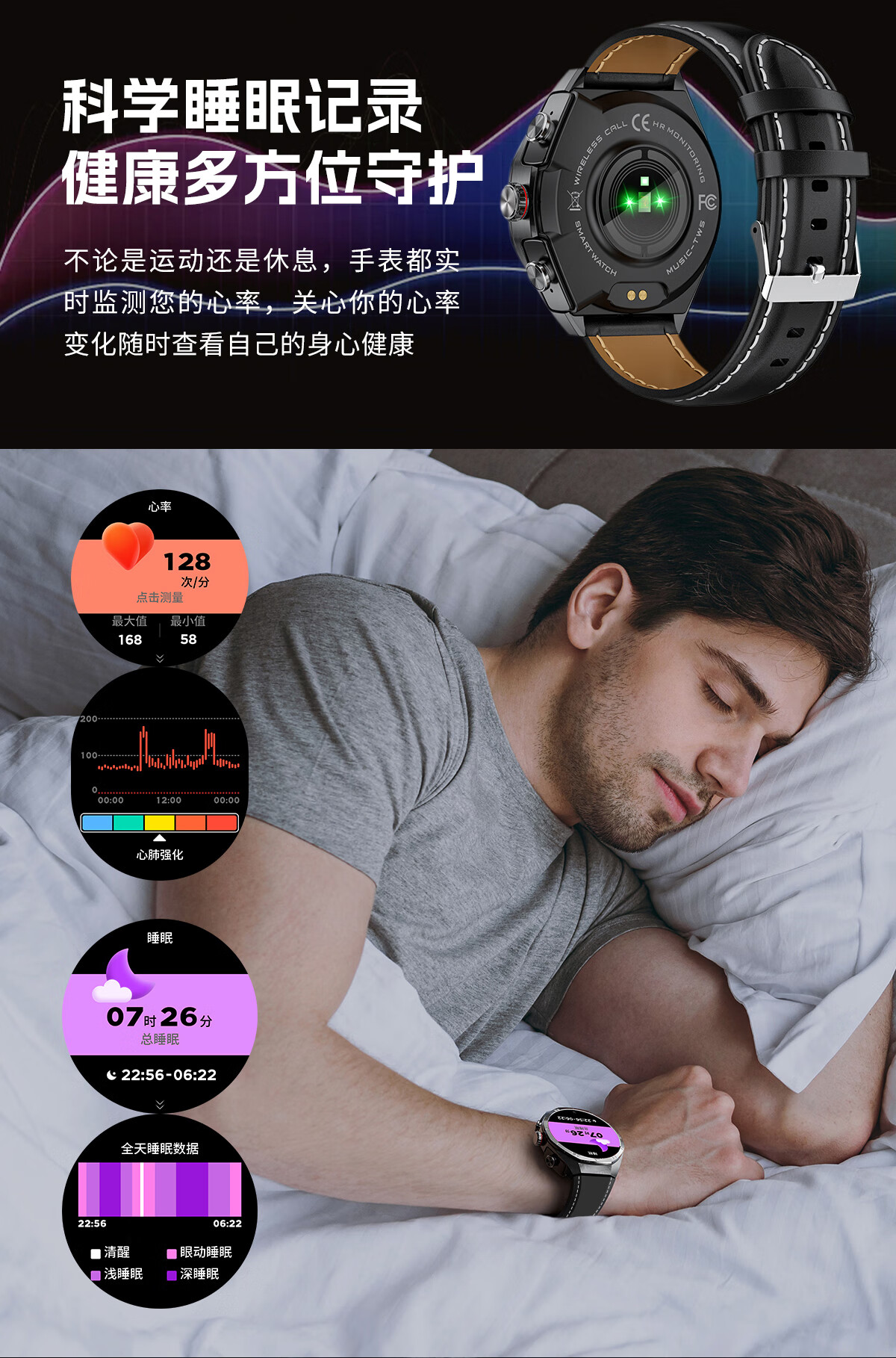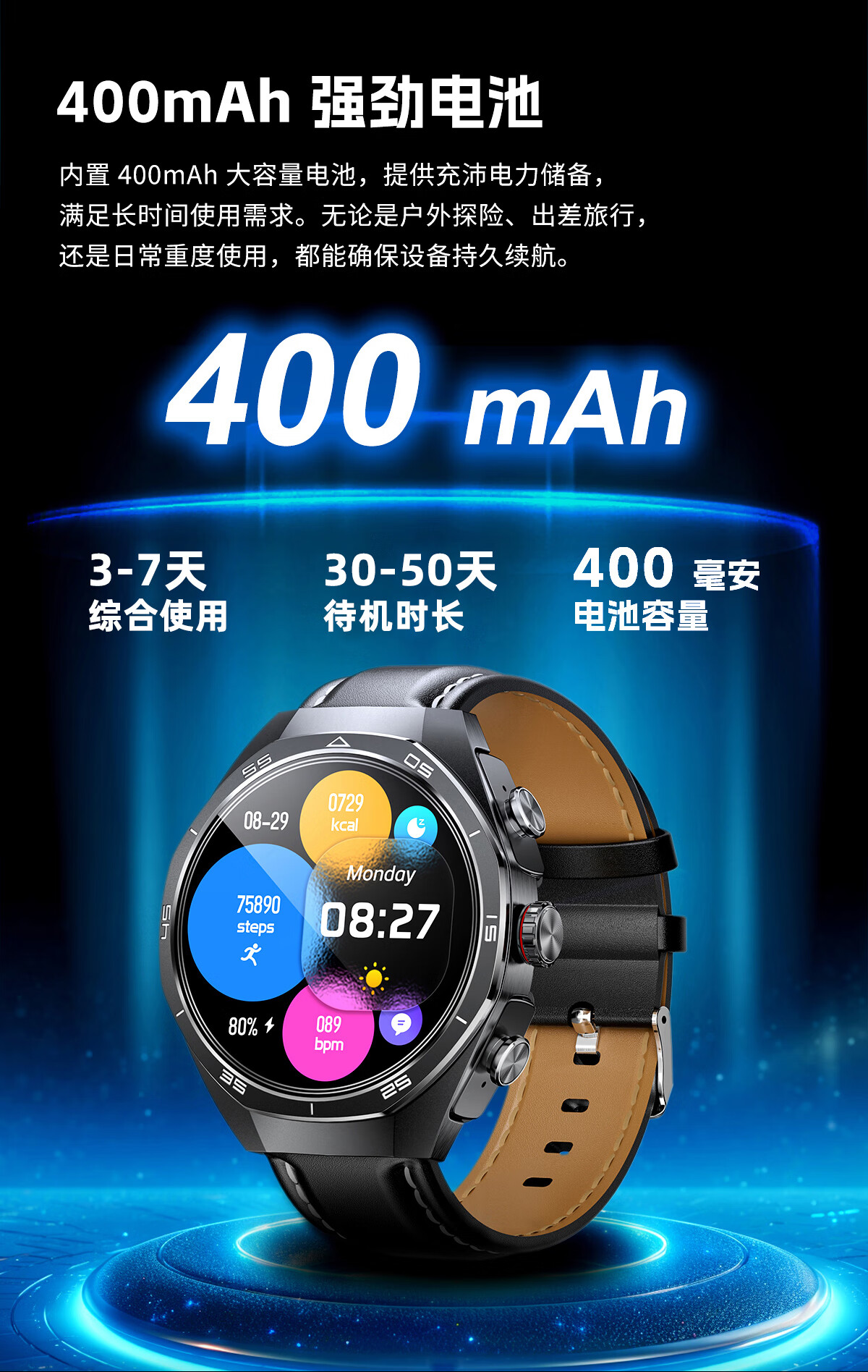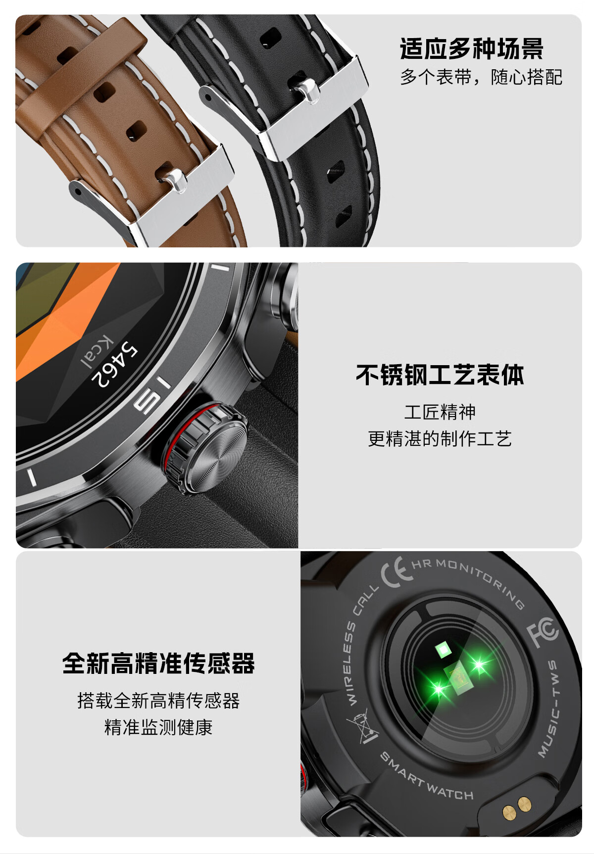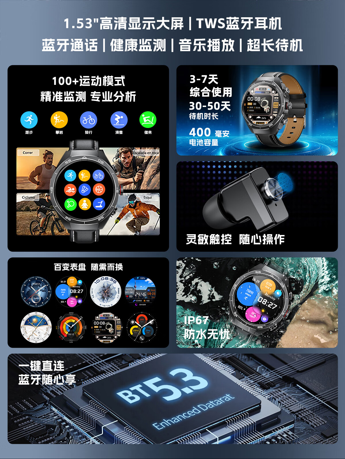 代发塞尔兰斯Watch 7 plus 智能心率测量运动通话带蓝牙耳机跑步通勤手表 灰色