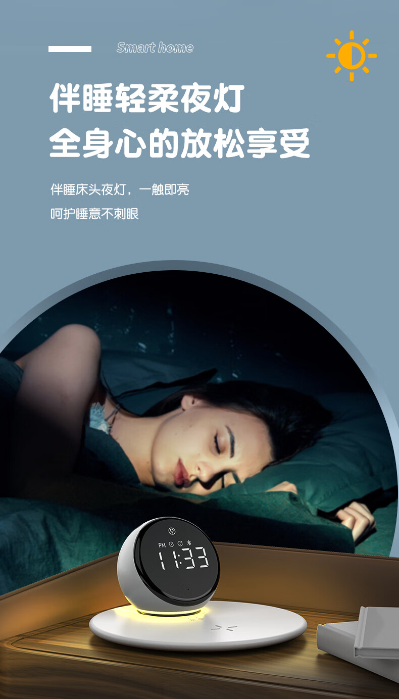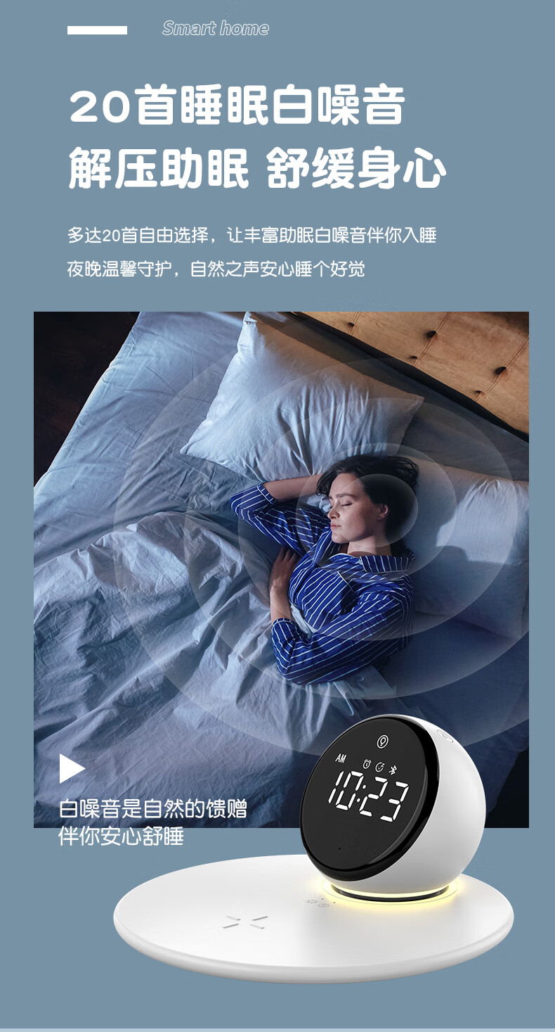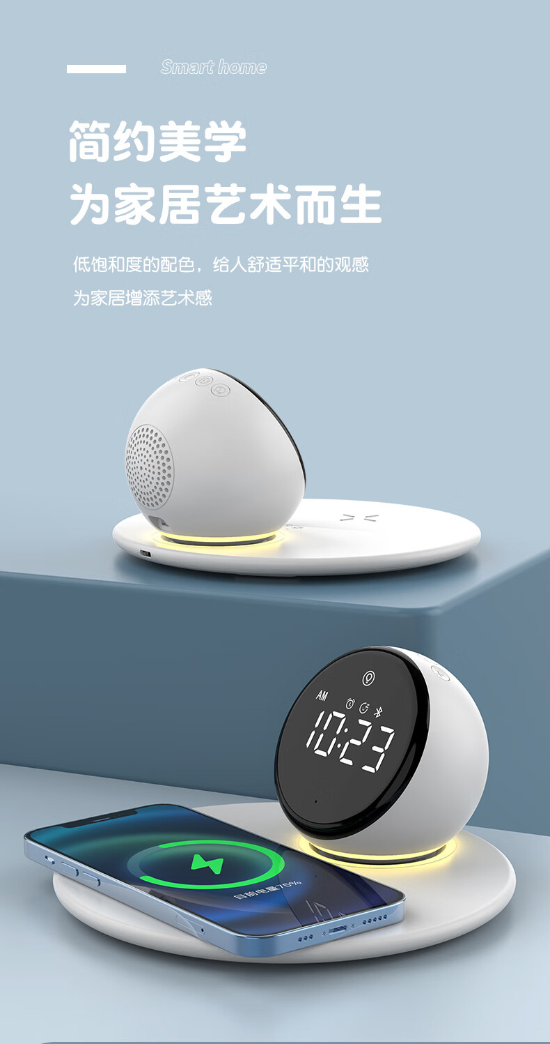 代发塞尔兰斯无线充蓝牙音响小夜灯懒人床头多功能无线充电器 白色