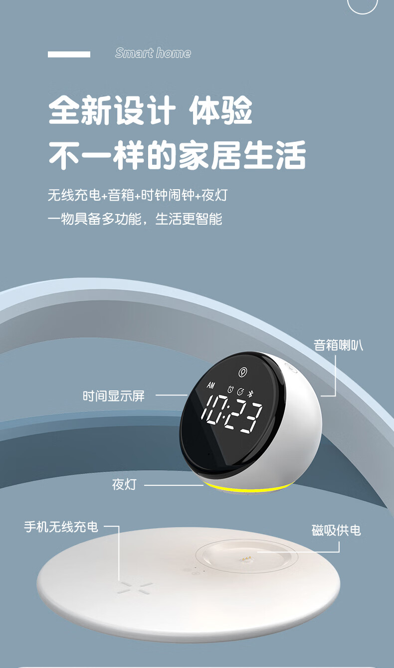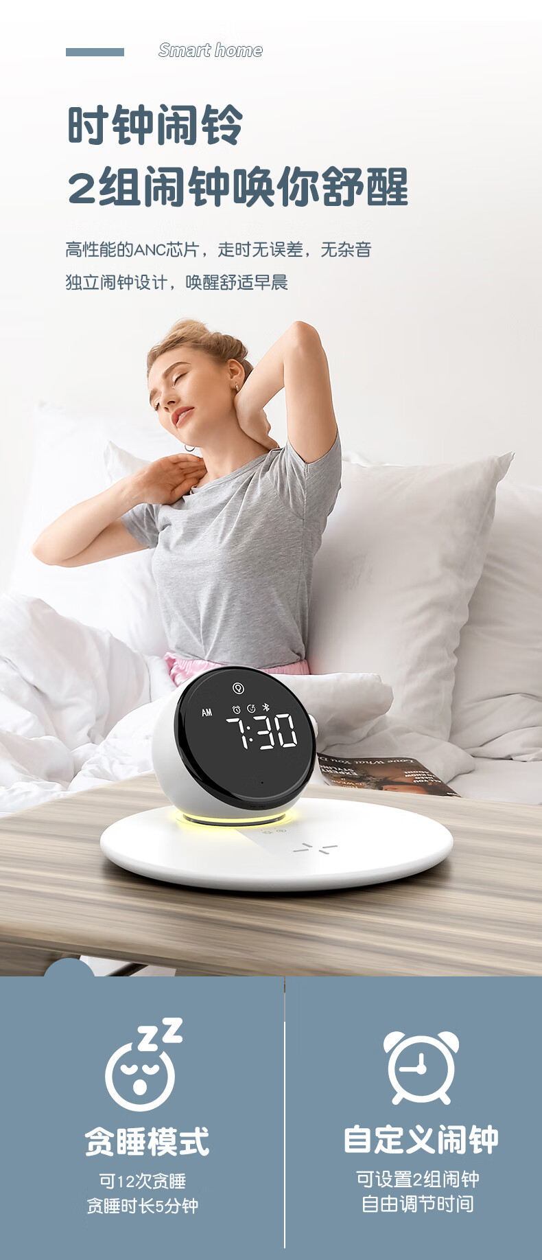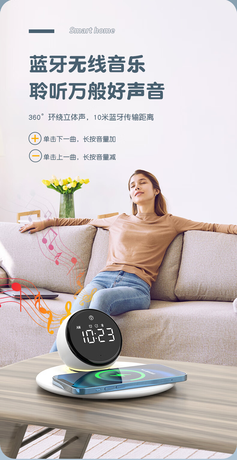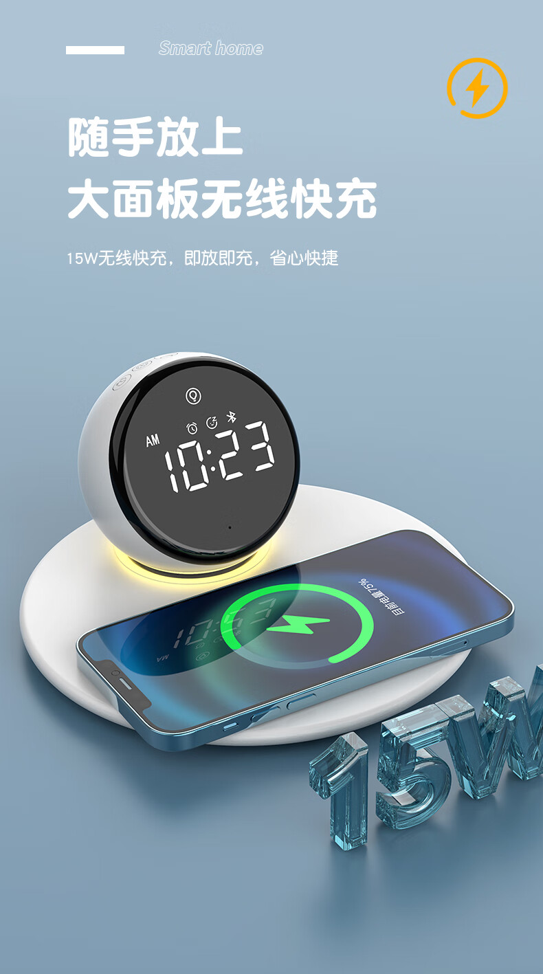 代发塞尔兰斯无线充蓝牙音响小夜灯懒人床头多功能无线充电器 白色