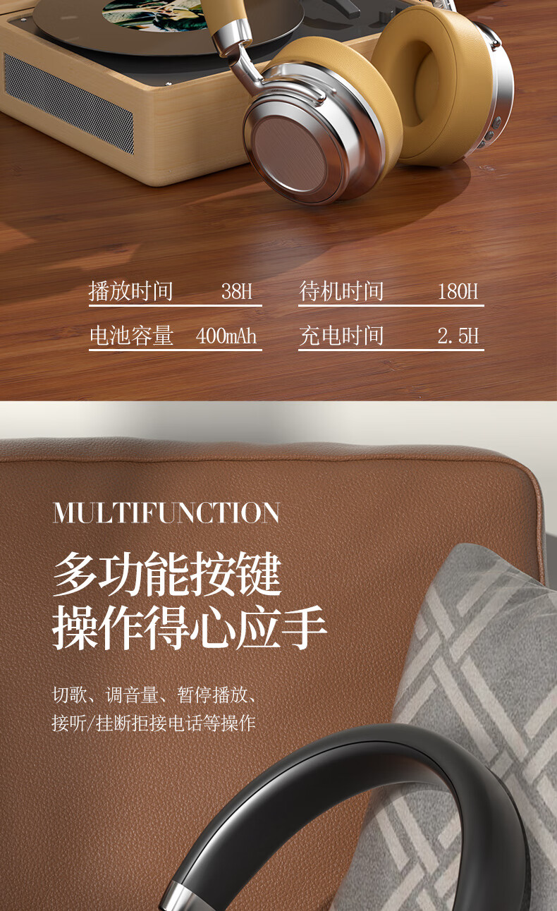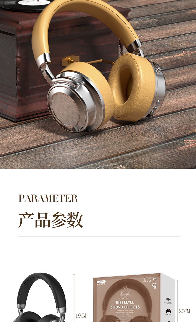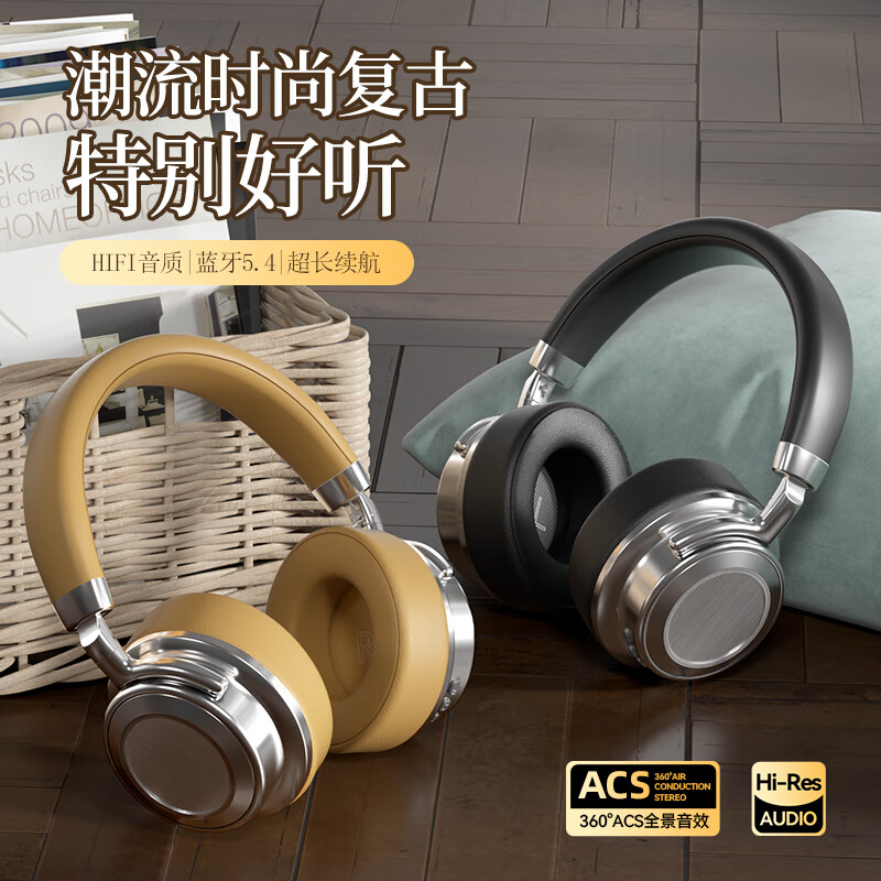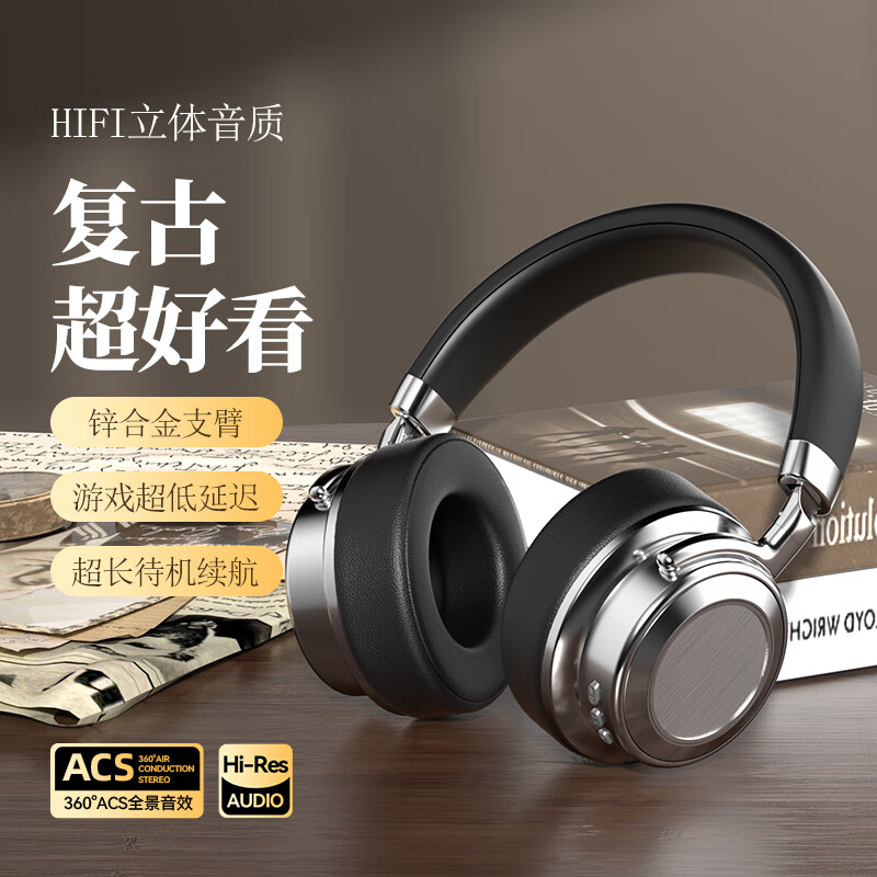 代发塞尔兰斯复古蓝牙头戴式时尚hifi耳机便携收纳 黑色SD-01