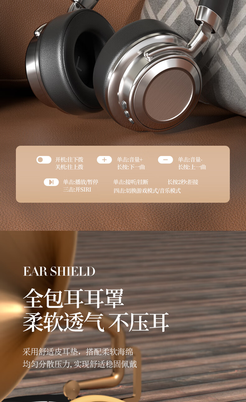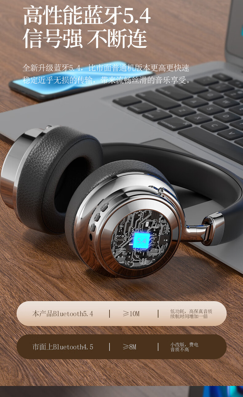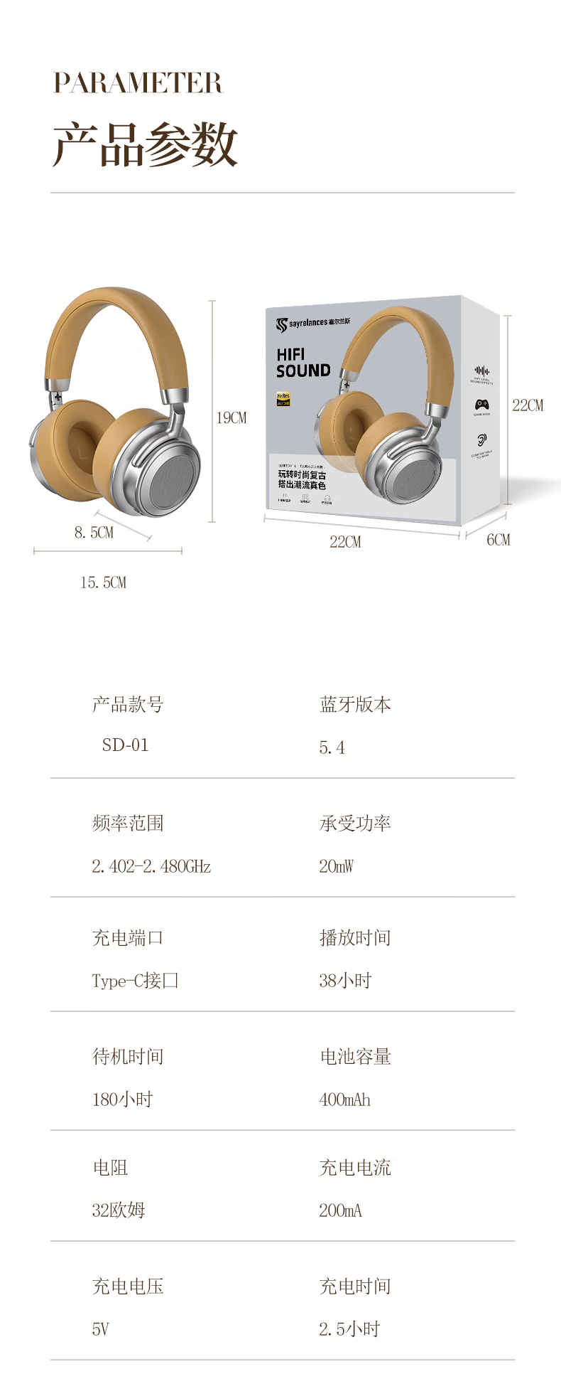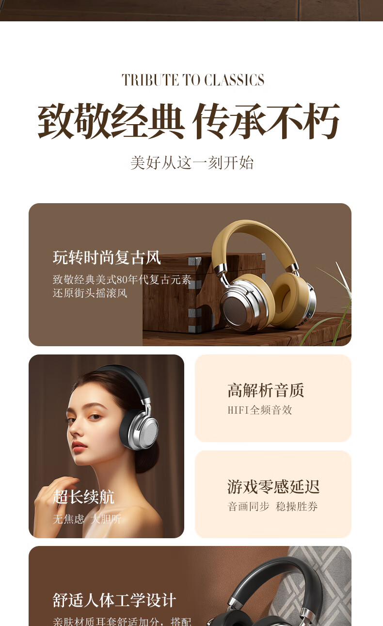 代发塞尔兰斯复古蓝牙头戴式时尚hifi耳机便携收纳 黑色SD-01