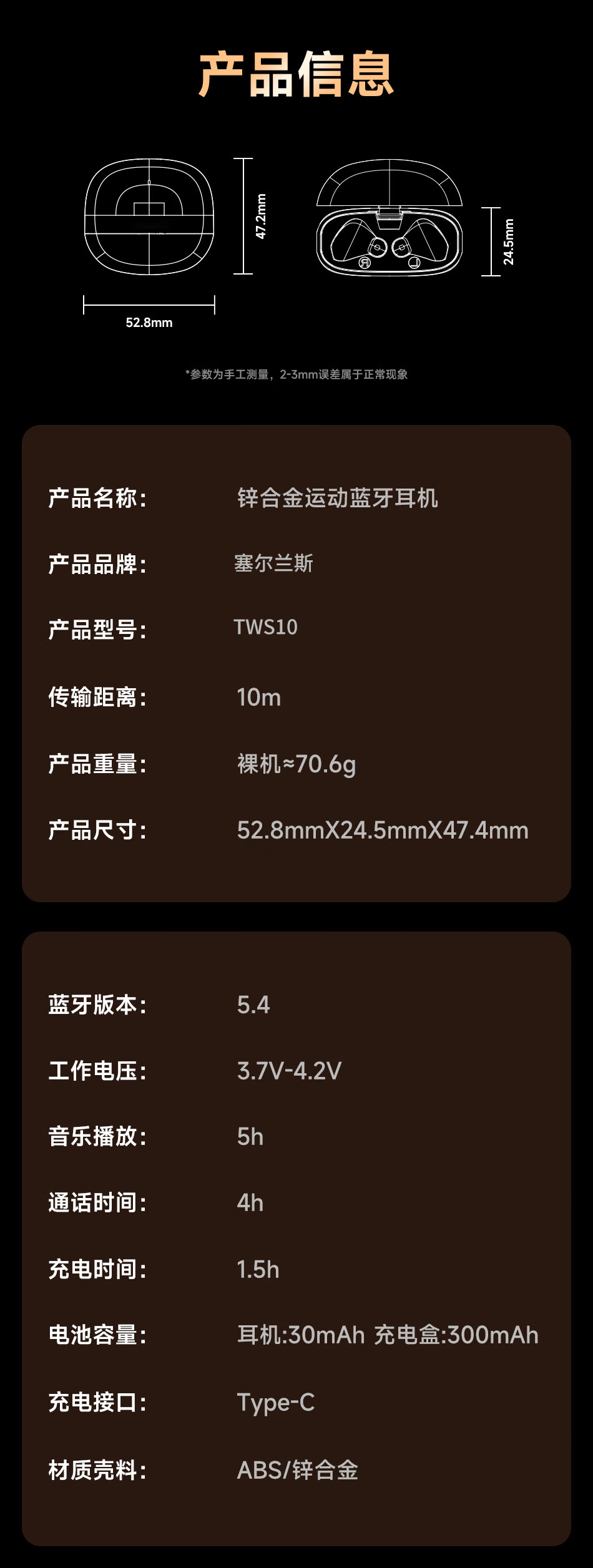 当前位置:首页 > 数码办公 > 影音娱乐 > 蓝牙/无线耳机 > 塞尔兰斯锌合金TWS蓝牙耳机运动户外商务蓝牙耳机 标准版