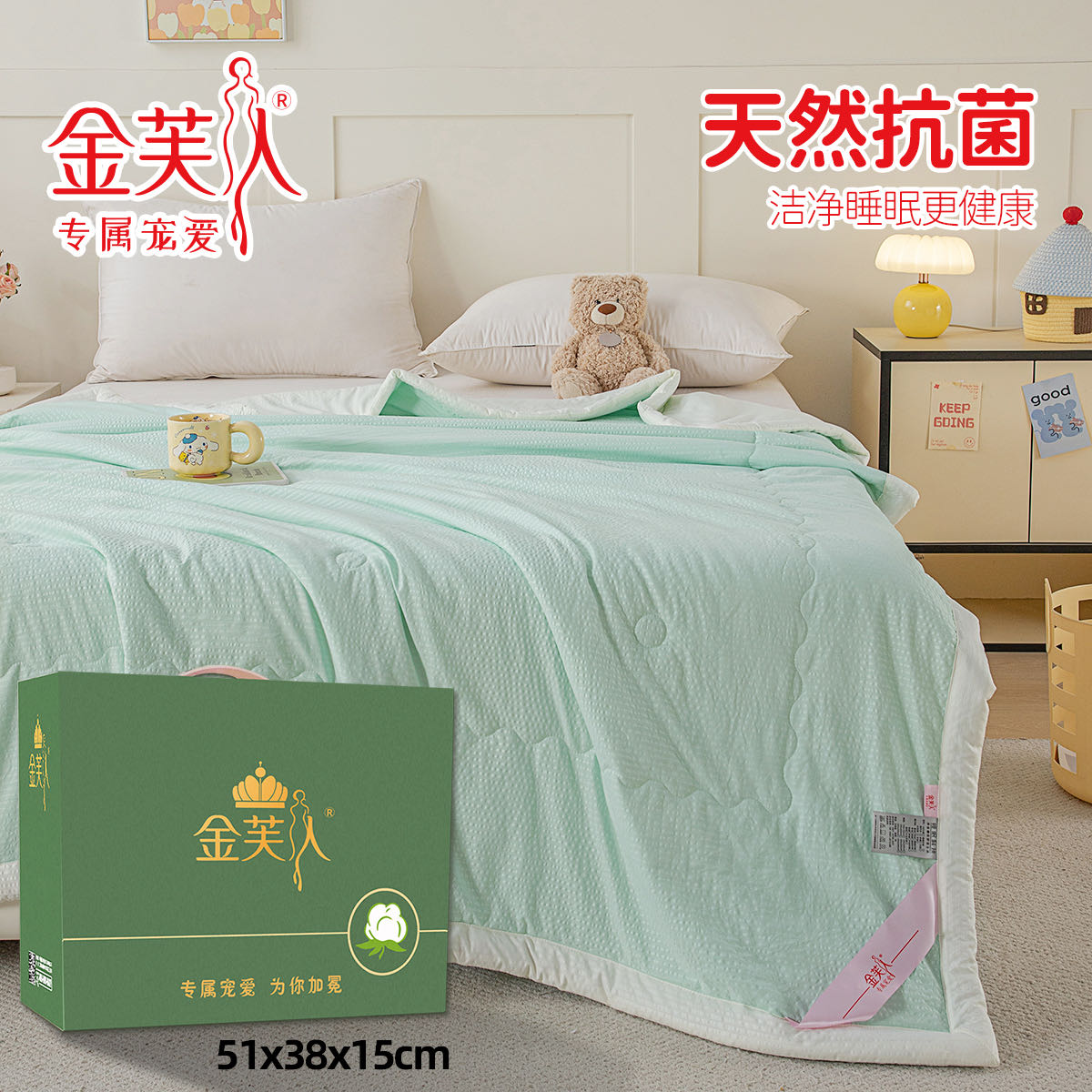 尺寸: 单人150×200㎝(送专用防尘袋 净重约1.8斤)配礼盒全套约2.8斤